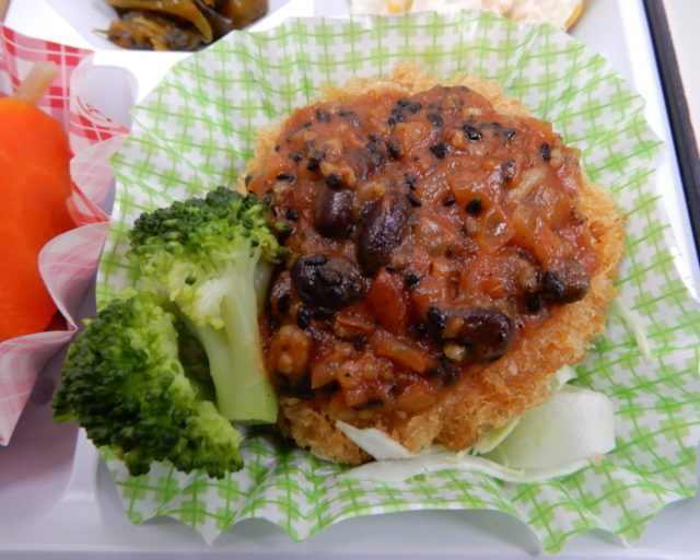 『とんかつ豆と雑穀トマトソース』 黒ごま、小豆、黒豆、大麦、うるちあわの5種類の穀物とインゲン豆やひよこ豆を加えたバランスの 良いトマトソースと今回はとんかつとを組み合わせで提供致します。 |
