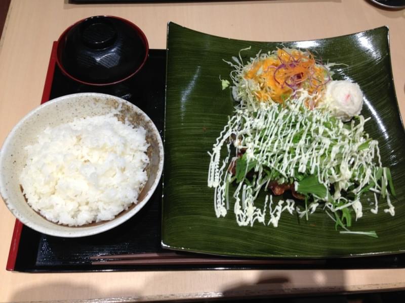 チキン南蛮定食です 鶏もも肉の大きな唐揚げに 甘酢あんとたっぷりの水菜とマヨネーズが… 野菜サラダとポテトサラダもあり 野菜がたっぷり入った定食に大満足でした