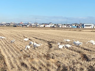 白鳥のランチタイムでしょうか? のんびりした風景に心なごみます(●´ω`●) 思わず、停まって見入ってしまいました(笑)
