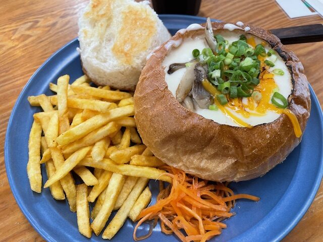 ハリーズチャウダーさんに行ってきました~ クラムチャウダー美味しかったです💛 器もパンなので食べ応えもありました!